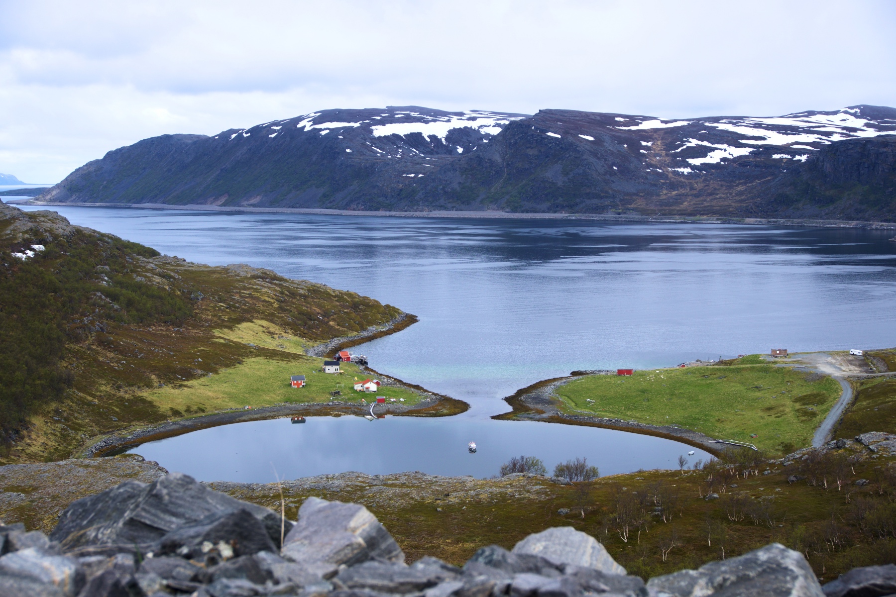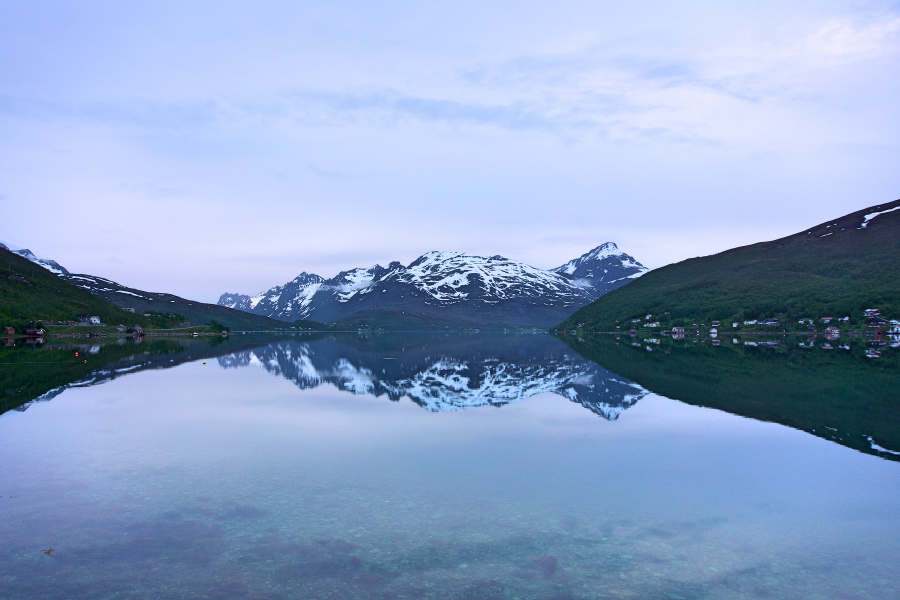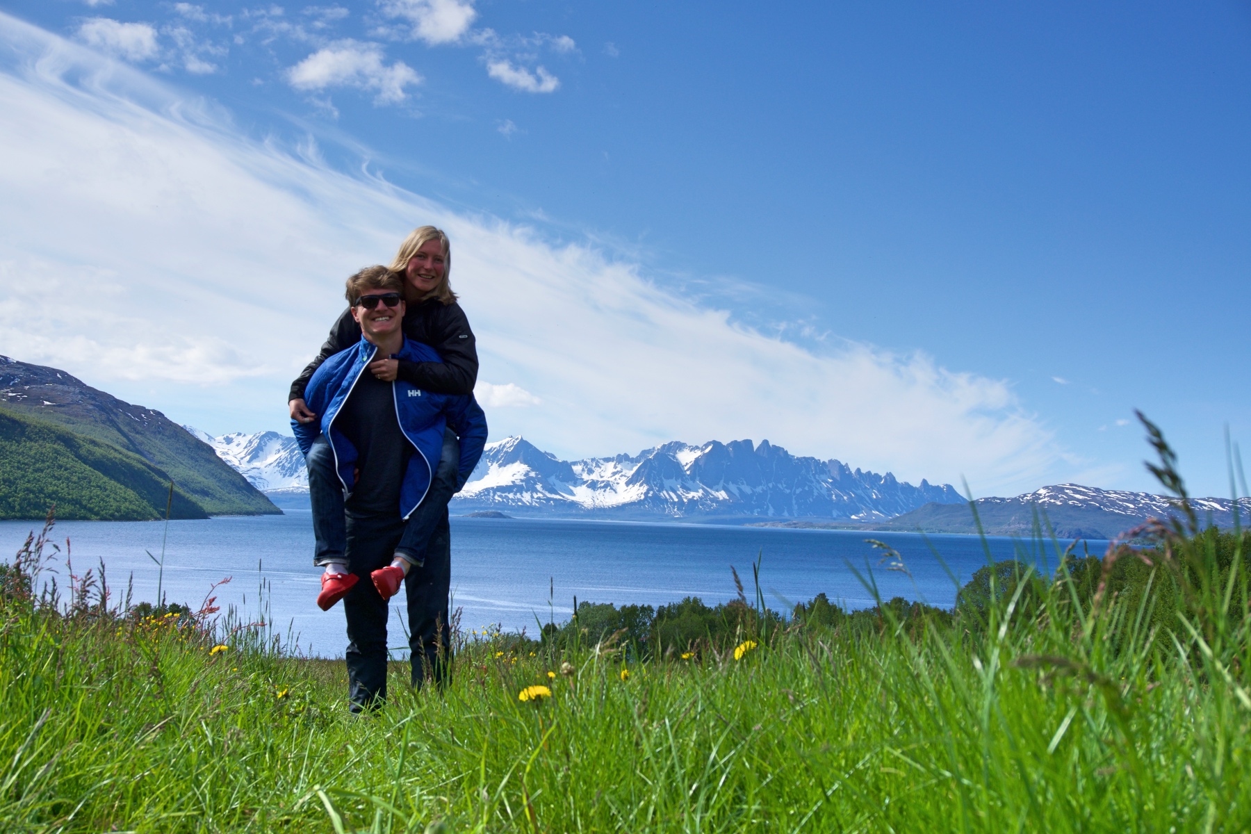 Es wird nicht dunkel, einfach nicht dunkel, ums Verrecken nicht dunkel … und wir finden es wunderbar. Mit dem Sonnenschein kommen uns die 6 Grad dann wenigstens nicht gar so kalt vor – und wir bleiben von Mücken verschont. Zudem gibt es keine schönere Farbkombi für Fotos, als das Weiß der Bergspitzen, das Schwarz-grau der Felsen, das strahlende Blau des Himmels und Wassers und das satte (oder auch saftige) Grün der Wiesen. Zwar mussten wir unsere Bergtouren entsprechend langsam gestalten, da wir ein Foto nach dem anderen schossen. Aber das machte uns überhaupt nichts aus, die Sonne ging ja eh nicht unter.
