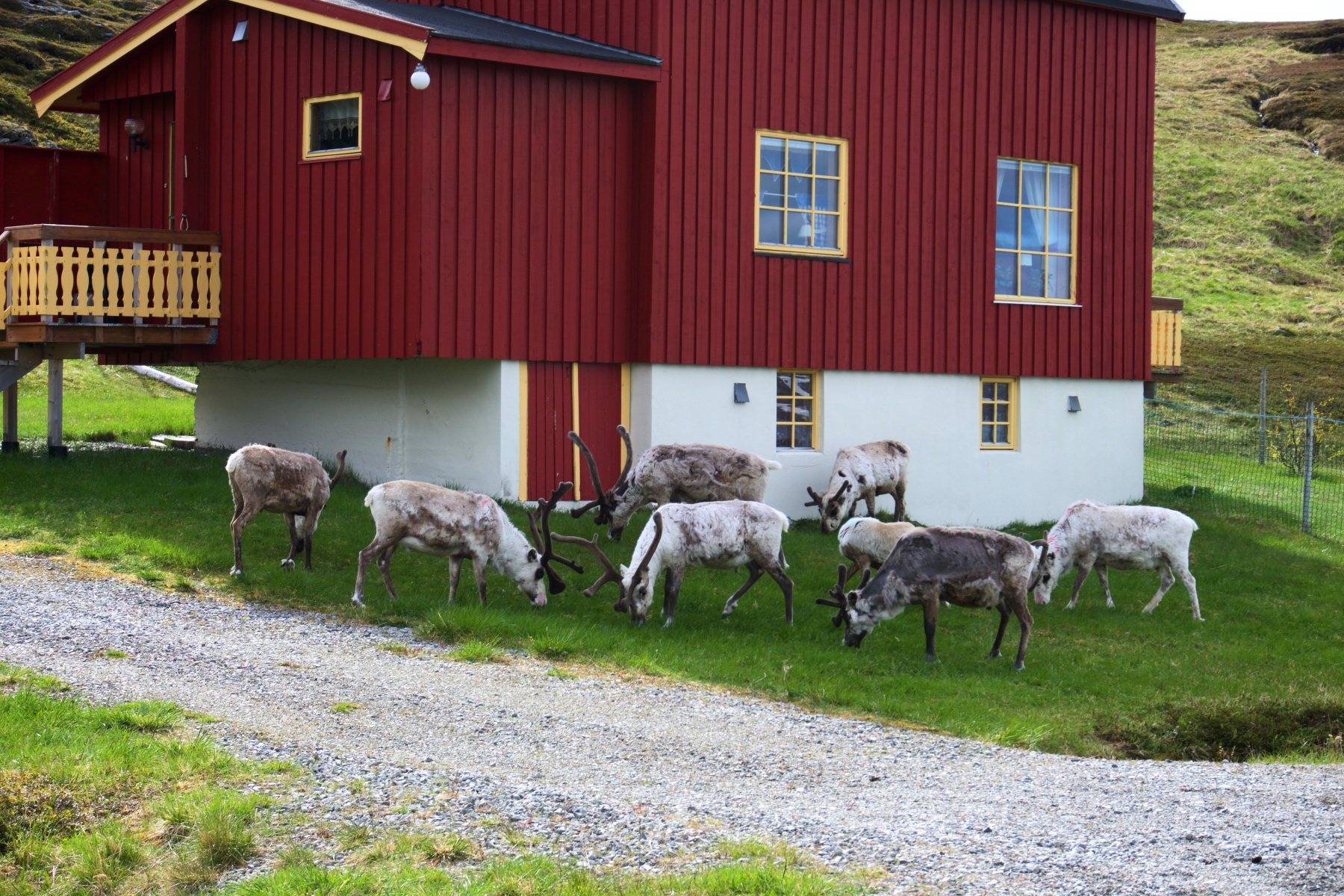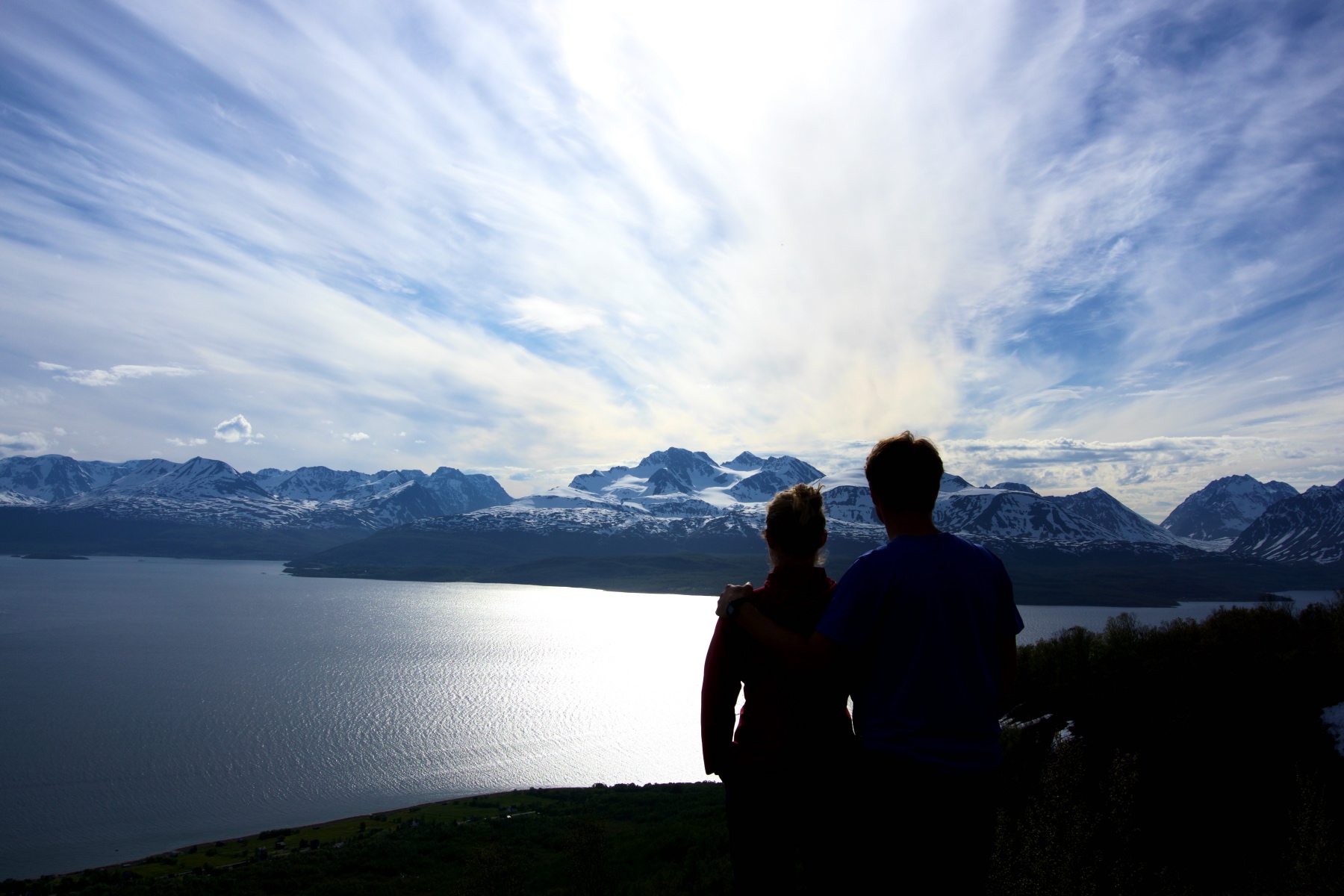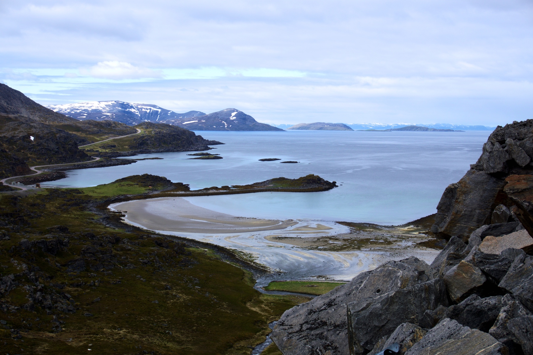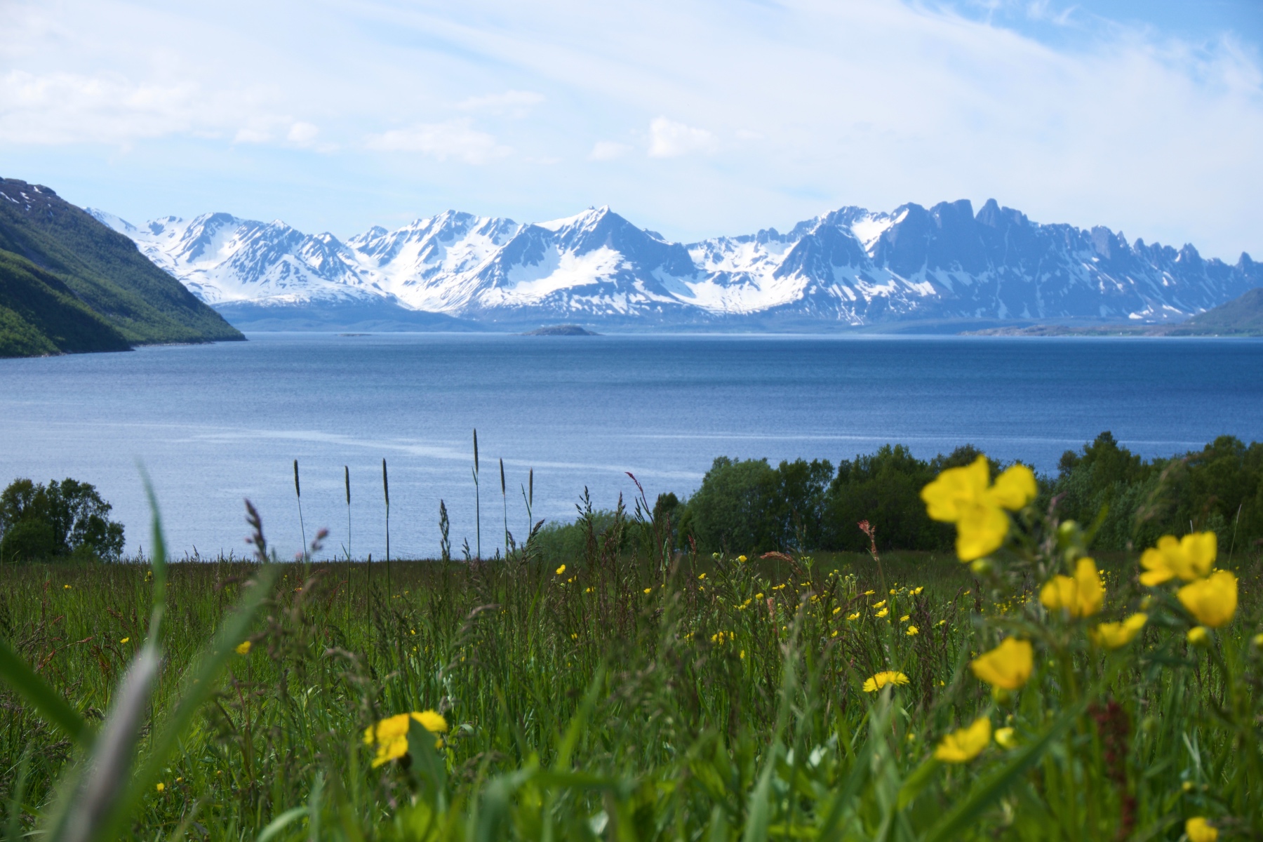 Es wird nicht dunkel, einfach nicht dunkel, ums Verrecken nicht dunkel … und wir finden es wunderbar. Mit dem Sonnenschein kommen uns die 6 Grad dann wenigstens nicht gar so kalt vor – und wir bleiben von Mücken verschont. Zudem gibt es keine schönere Farbkombi für Fotos, als das Weiß der Bergspitzen, das Schwarz-grau der Felsen, das strahlende Blau des Himmels und Wassers und das satte (oder auch saftige) Grün der Wiesen. Zwar mussten wir unsere Bergtouren entsprechend langsam gestalten, da wir ein Foto nach dem anderen schossen. Aber das machte uns überhaupt nichts aus, die Sonne ging ja eh nicht unter.